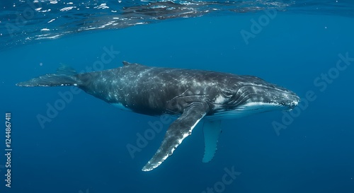 © Penggila, Naklejka premium Humpback Whale Swimming Underwater Ocean Wildlife