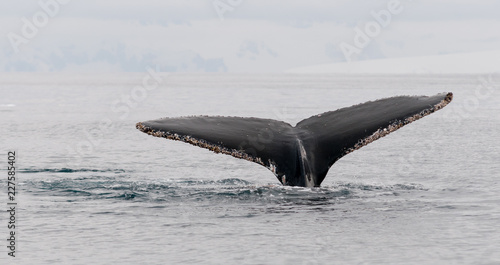 Fototapeta premium Humpback Whale tail flukes encrusted with barnacles, Antarctic Peninsula