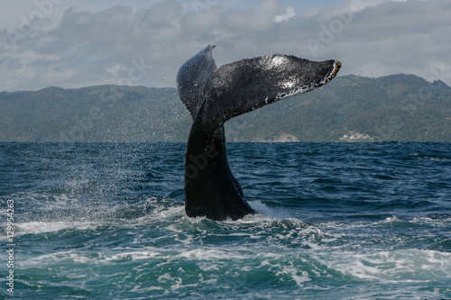 Naklejka premium Humpback whale tail in Samana, Dominican republic