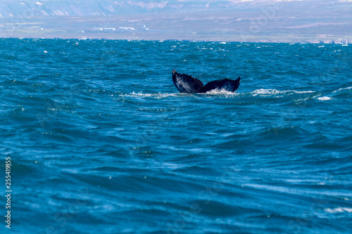 Naklejka premium Humpback whale tail on Husavik Iceland