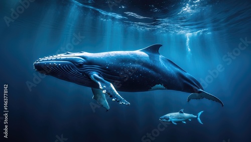 © GenZGraphics, Obraz premium Humpback Whale with Its Young