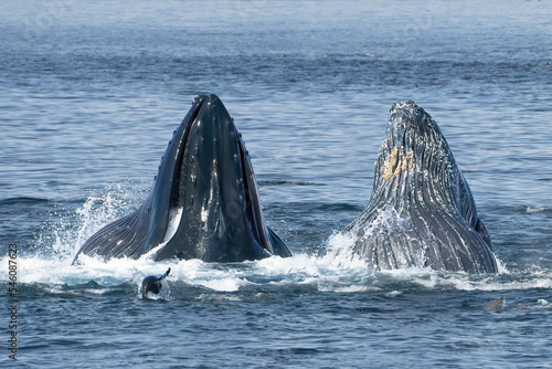 Fototapeta premium Humpback whales lunging and breaching