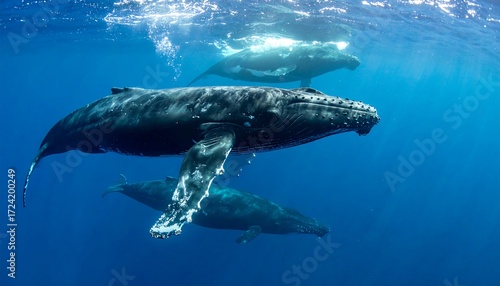 © Su, Obraz premium Humpback whales surfacing in turquoise water