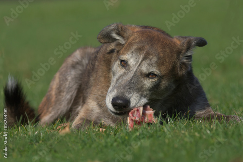 © steffiheufelder, Fototapeta premium Hund frisst Kaninchenkarkasse