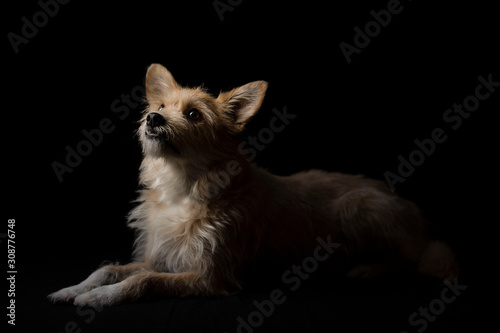 © Sabine, Obraz premium hund schwarzer hintergrund