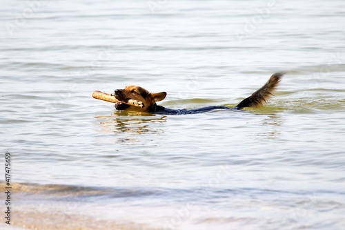 Fototapeta premium Hund spielt im Wasser
