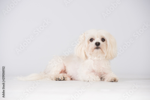 © D.S., Fototapeta premium Hund Studio Süß Freisteller Weiß