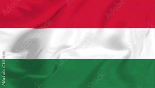 Obraz premium Hungarian flag with horizontal red, white, green stripes, simple tricolor...
