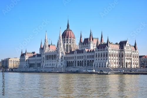 © PRANGKUL, Naklejka premium Hungarian Parliament Building also known as the Parliament of Budapest, This place is the seat of the National Assembly of Hungary. Located along the Danube River.