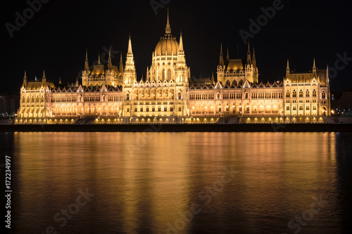 Obraz premium Hungarian Parliament Building at night, Budapest, Hungary