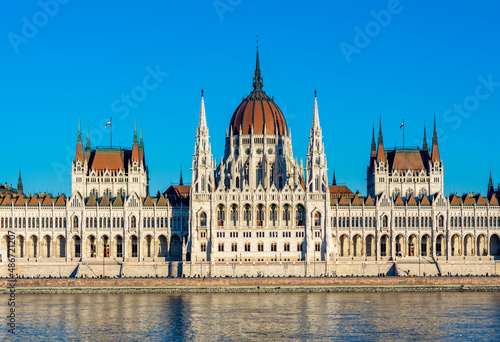 Fototapeta premium Hungarian Parliament building at sunset in Budapest, Hungary