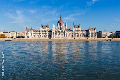 Obraz premium Hungarian Parliament Building from the west bank of Danube, Budapest