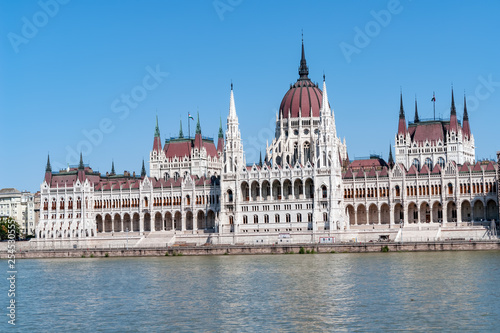 Fototapeta premium Hungarian Parliament Building in Budapest with Danube river in foreground -...