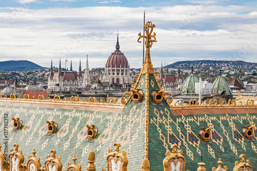 Obraz premium Hungarian parliament in Budapest on the Danube river