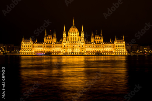 Fototapeta premium Hungarian Parliment night panoramic view, Budapest, Hungary
