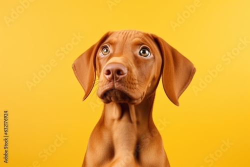 © dark_blade, Fototapeta premium hungarian vizsla puppy in studio on yellow background, AI Generated