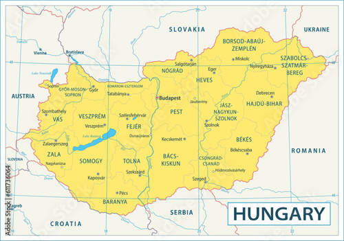 Obraz premium Hungary map - highly detailed vector illustration