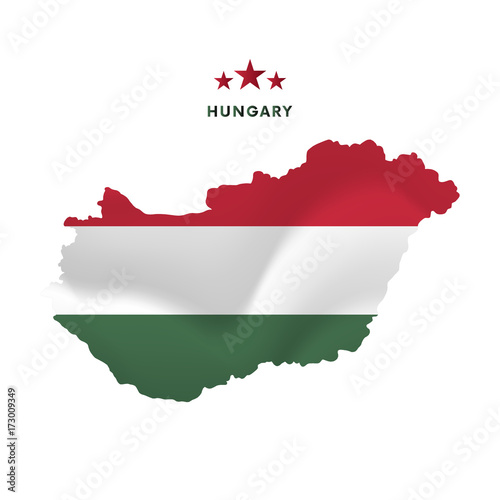 © seinartdesign, Obraz premium Hungary map with waving flag. Vector illustration.