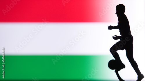 Fototapeta premium Hungary National Flag. Football, Soccer player Silhouette