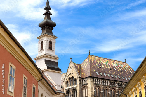 Fototapeta premium Hungary, old streets in historic city near Budapest Castle and Fisherman...