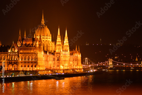 © Jana, Obraz premium Hungary's Parliament building in Budapest by the Danube river