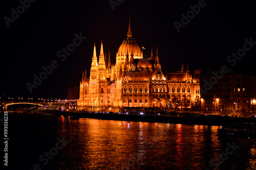 © Jana, Obraz premium Hungary's Parliament building in Budapest by the Danube river