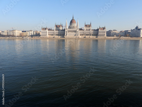 Obraz premium Hungary's Parliament building in Budapest by the Danube river