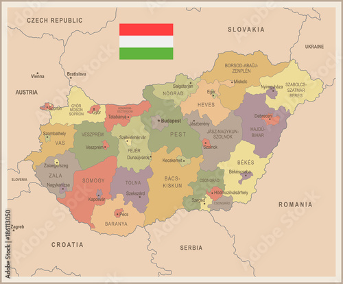 Obraz premium Hungary - vintage map and flag - Detailed Vector Illustration