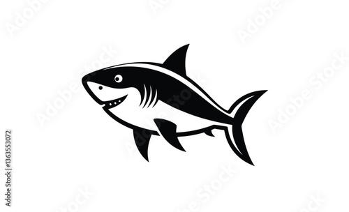 Fototapeta premium Hungry great white shark silhouette, Hungry Great White Shark, Wild Marine Animal Illustration