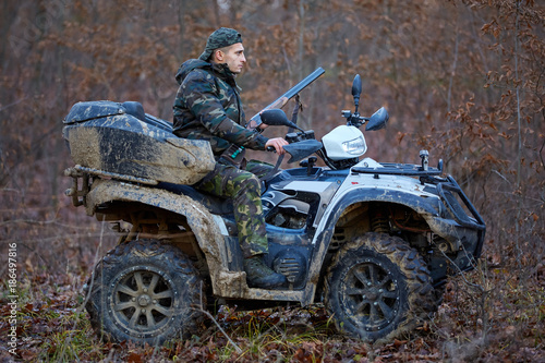 © Xalanx, Fototapeta premium Hunter on ATV in the forest