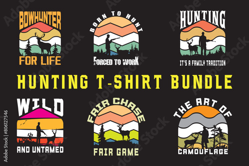 © BINDASBIPLOB, Naklejka premium Hunting T shirt design vector creative graphic collection Vintage hunting illustration bundle