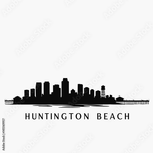 Naklejka premium Huntington Beach Skyline Silhouette Vector.