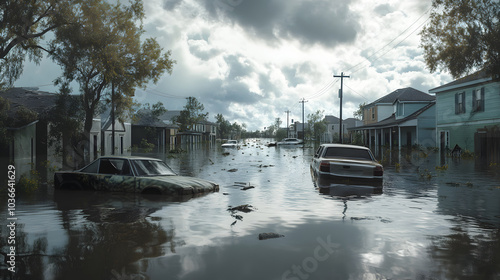 Fototapeta premium hurricane natural disaster rainstorm flooding typhoon coastal area island...
