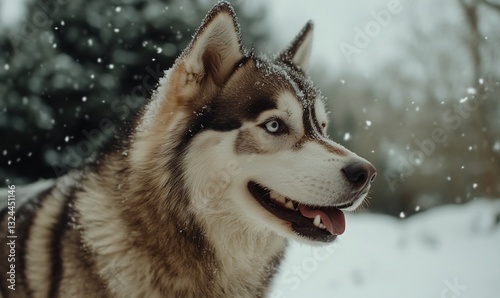 Naklejka premium Husky dog in winter snow