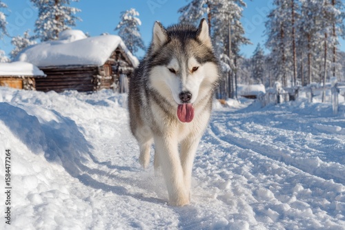 © LimeSky, Fototapeta premium Husky enjoying the snow on a bright winter day in Lapland Finland