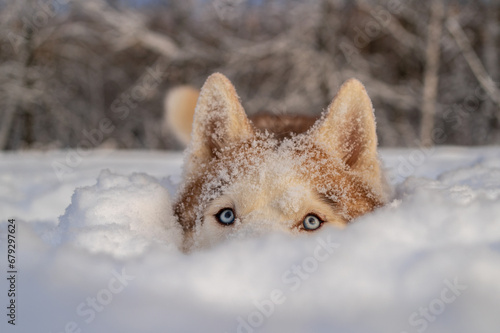 © Mighty, Fototapeta premium Husky hiding in the snow