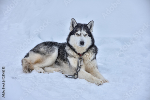 © Олег Спиридонов, Naklejka premium husky lying in the snow
