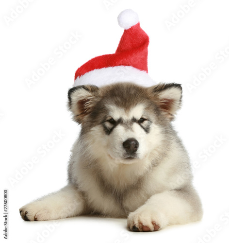 © jagodka, Obraz premium Husky puppy (3 months) in a Christmas cap