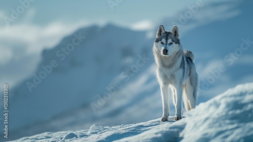 © Pixora Labs, Fototapeta premium Husky standing in the snowy mountains