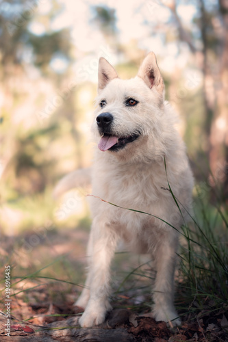 © Sarina, Obraz premium Husky Wolfhound dog looking through bush