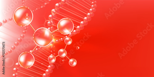 © Bravekanyawee, Obraz premium Hyaluronic acid hair and skin solutions ad, red collagen serum drop with cosmetic advertising background ready to use, illustration vector.