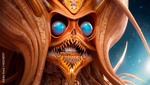 Fototapeta premium Hybrid between human and alien, generative Ai, human, alien, new species, technology, innovation, planet, graffiti, animal