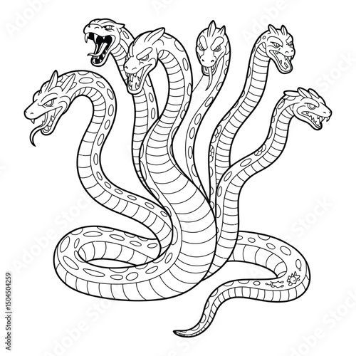 Fototapeta premium Hydra with multiple heads Coloring Page, Silhouette, Vector, Illustration,...