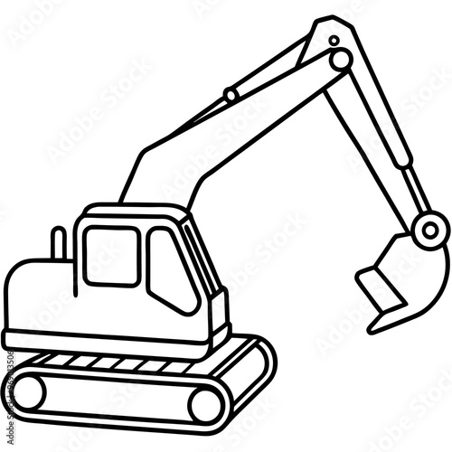 © Shapla, Naklejka premium hydraulic excavator machine outline coloring book page line art drawing