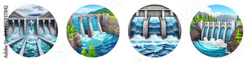 Naklejka premium Hydroelectric Power clipart collection, symbol, logos, icons isolated on...