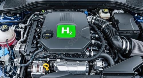 Fototapeta premium Hydrogen Powered Engine Compartment Displaying H2 Symbol, Automotive...