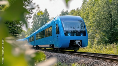 Fototapeta premium Hydrogen trains for public transport, offering fast, clean energy rail services for cities and regions