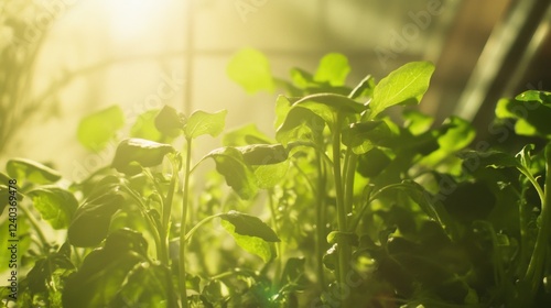 © Roman, Obraz premium Hydroponic lettuce sunlight. Generative AI