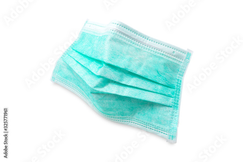 © Voranut, Fototapeta premium Hygienic mask or surgical earloop face mask isolated on white background with clipping path. anti virus and bacteria protective face air pollution, environmental and protection concept.
