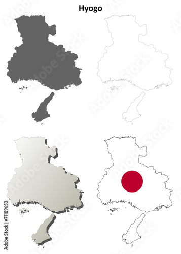 Obraz premium Hyogo blank outline map set